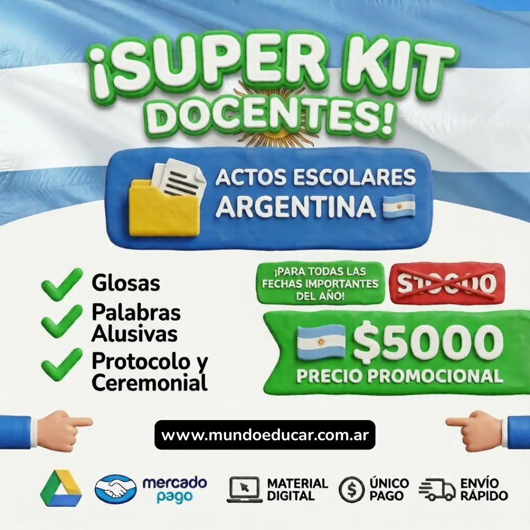 Es un SÚPER KIT PARA ACTOS ESCOLARES DE ARGENTINA, incluye PALABRAS ALUSIVAS, GLOSAS, PROTOCOLO Y CEREMONIAL para ¡TODAS LAS FECHAS DEL AÑO! ¡SI, TODAS! 🇦🇷⭐👇